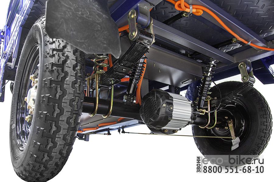• электрический трицикл Rutrike D4 оснащён вместительным кузовом габаритами 1800 x 1200 x 450 мм (Д х Ш х В), в котором можно перевозить груз общим весом до 1 тонны;