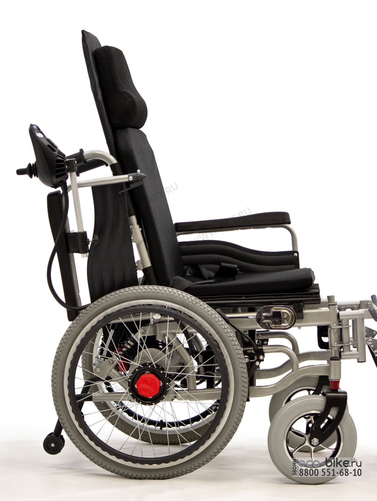 Электроприводное кресло-коляска с возможностью перевода сиденья из сидячего в горизонтальное положение для отдыха, или проведения процедур. Возможность без посторонней помощи в считанные секунды организовать полноценное лежачее место экономит силы и нервы больного за счёт отсутствия передислокаций в коляску и из неё.