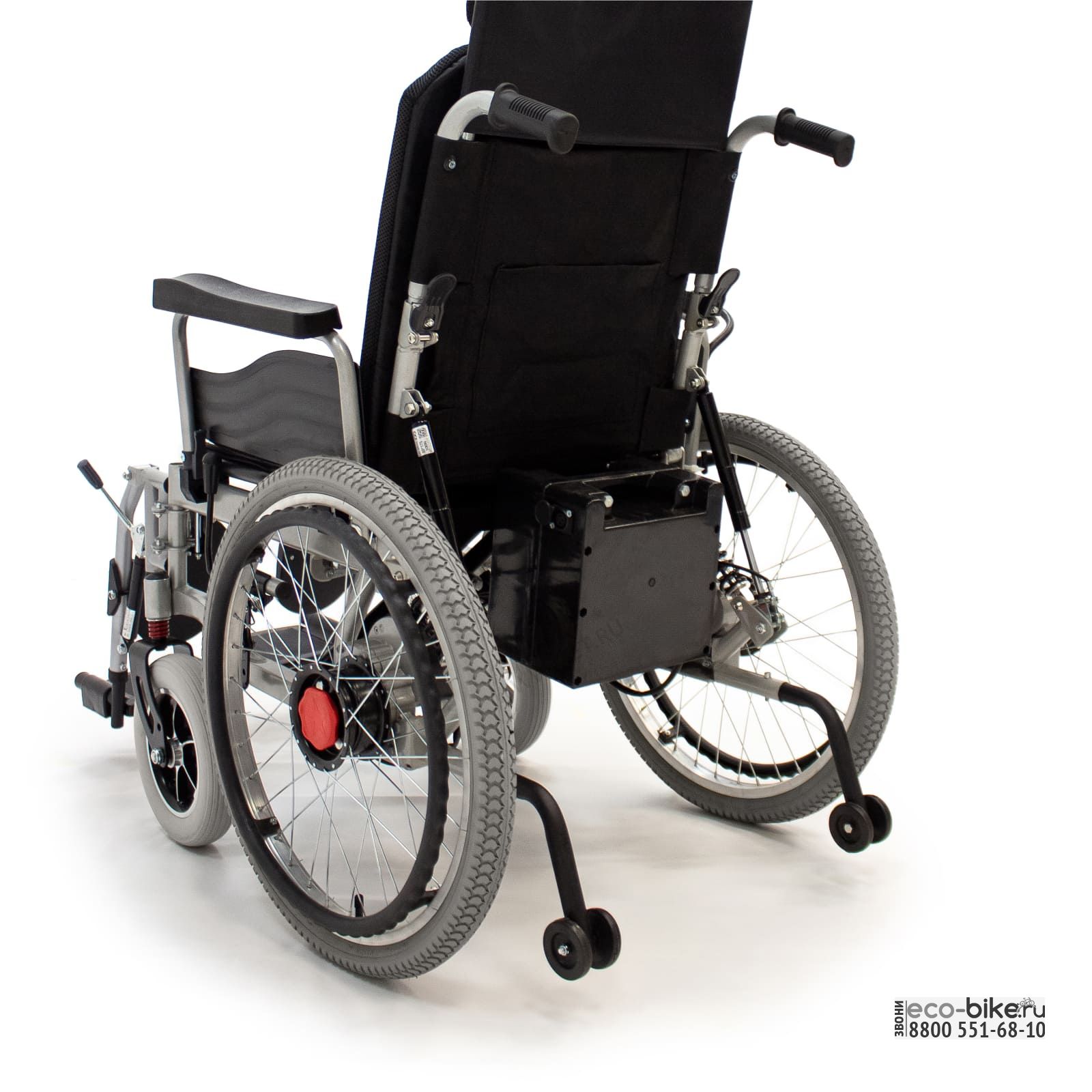 Кресло-коляска электрическое  оборудовано задним приводом, реализованным в виде двух независимых электромоторов на безугловом редукторном соединении с ведущими колёсами. Такой тип электропривода наиболее надёжен и прост в обслуживании, так как достигается максимальная простота механических соединений.