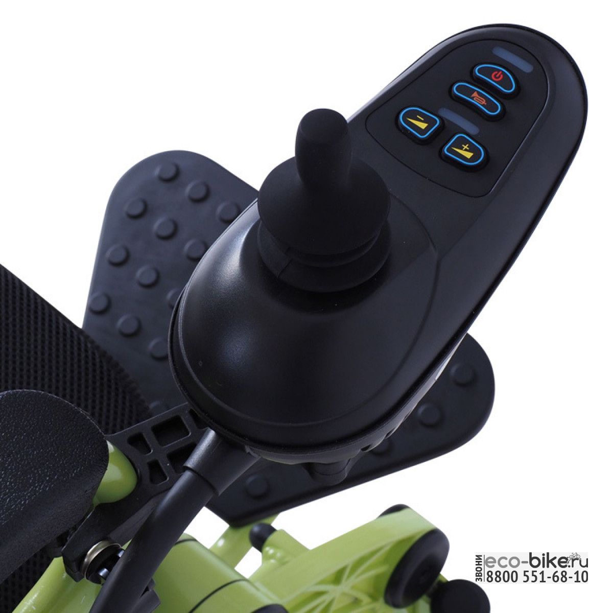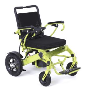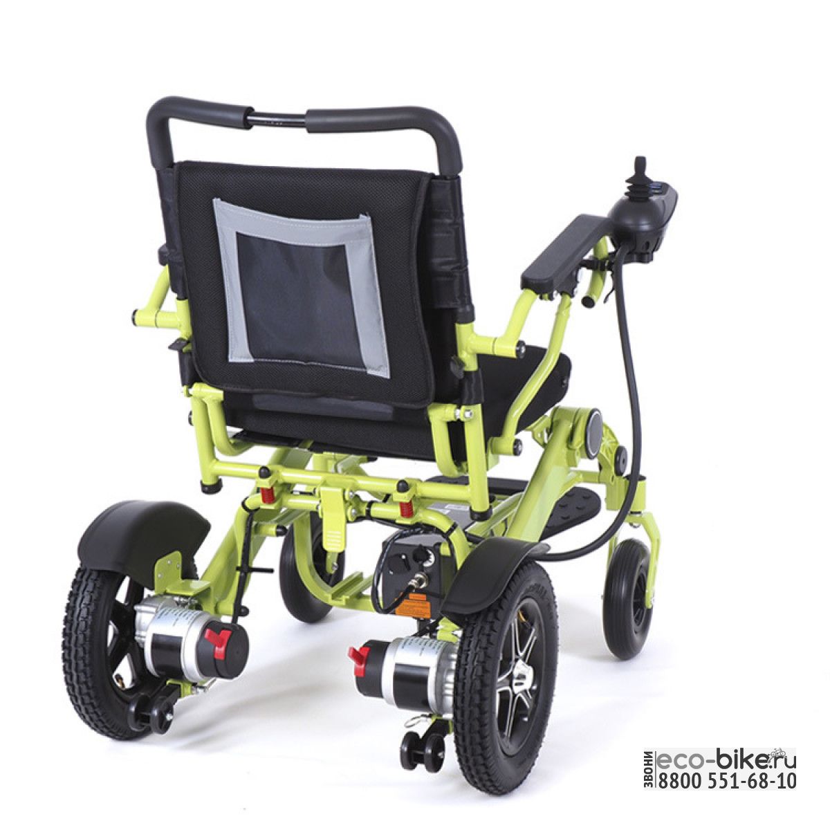 Электрическое кресло-коляска с компактно складывающейся рамой зелёного цвета